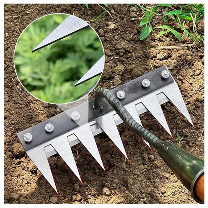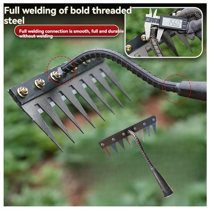 ✅ Heavy Duty Performance – Strong carbon steel teeth penetrate soil deeply, making it effective for removing stubborn weeds, aerating the ground, and preparing soil for planting. Ideal for both small backyards and large garden
