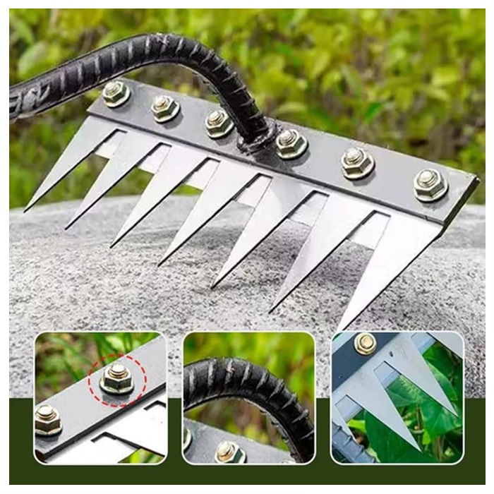 ? Kukuh & Tahan Lama – Diperbuat daripada keluli karbon berkualiti tinggi, garu taman ini direka untuk menahan lentur, pecah dan haus, walaupun dalam keadaan tanah yang sukar. Sesuai untuk prestasi tahan lama di taman anda.
