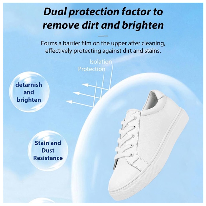 2.白鞋清洁:专为白鞋配制,有效清洁和提亮白鞋,恢复其原有颜色。