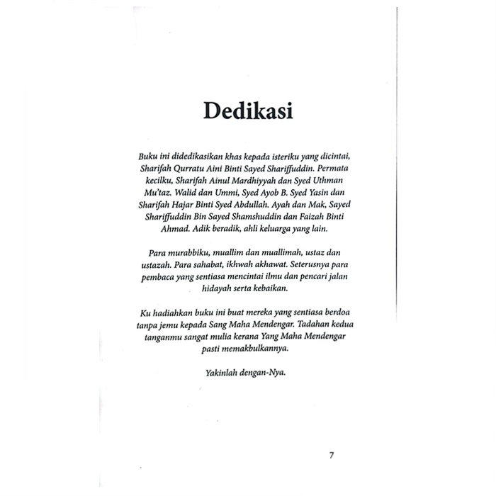 Hopefully this work can provide benefits to readers and make it easier for readers to practice the famous prayers from the Prophet SAW and most importantly, the readers and the writer themselves will clearly know how to pray that Allah Taala will accept it. Because we do not want to pray in a situation where Allah does not accept it. Hopefully with the presence of this book in your hands, it can provide benefits and increase knowledge and strengthen the acceptance of our prayers to Him.