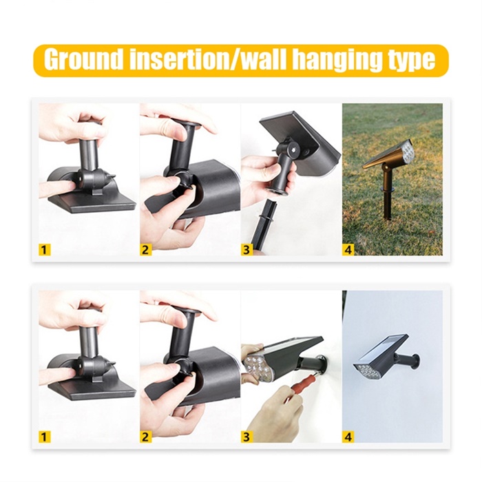 -Pemasangan Mudah: Panel solar berputar 180 darjah, dan lampu rumput berputar 90 darjah. Termasuk aksesori skru untuk pemasangan dinding atau rumput, menjadikan persediaan mudah dan mudah.