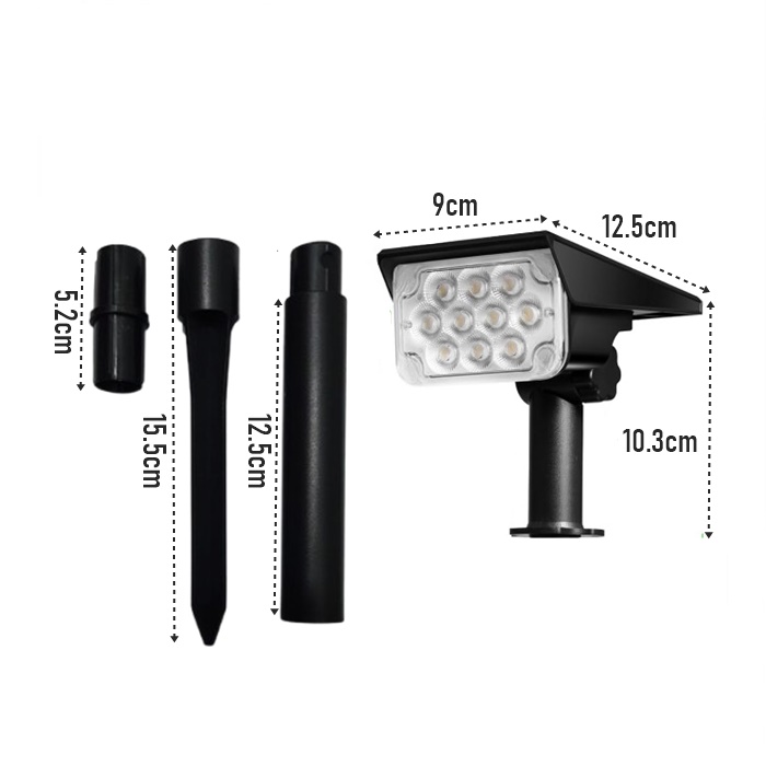 -持久的电池:配备内置 2200mAh 电池,在阳光下约 8 小时内充电,在夜间提供 6-9 小时的照明。