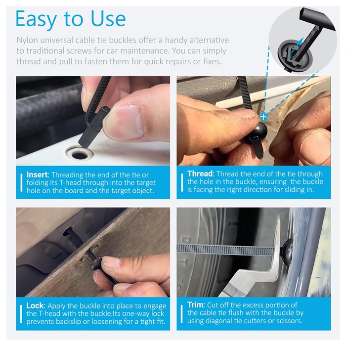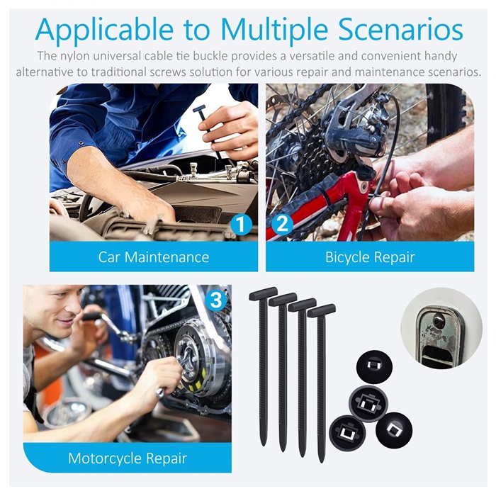 These lightweight, easy-to-use cable ties are the ultimate solution for organizing and securing objects efficiently. Whether you’re fixing panels on your car, tidying up cables at home, or setting up outdoor gear, these zip ties deliver reliable performance every time.