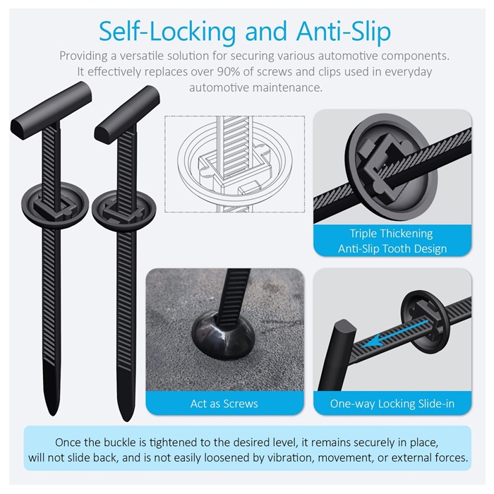 Multipurpose Use – Perfect for securing car fenders, trunk panels, wires, cables, pipes, and more.