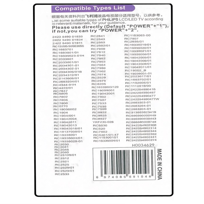 1 × Philips Smart Android TV Universal Remote Control (RM-L1285+)