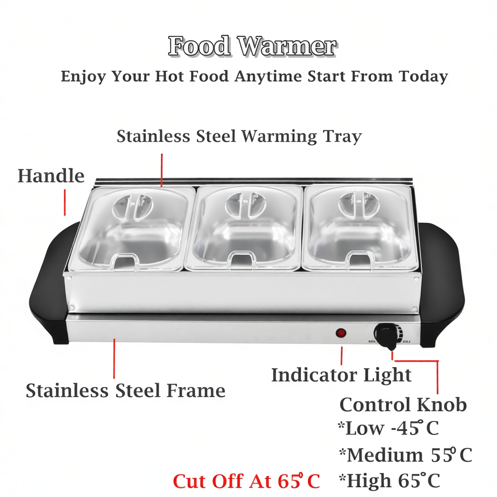 Electric Buffet Food Warmer – 3-Pot Heating Tray for Parties, Raya & Events