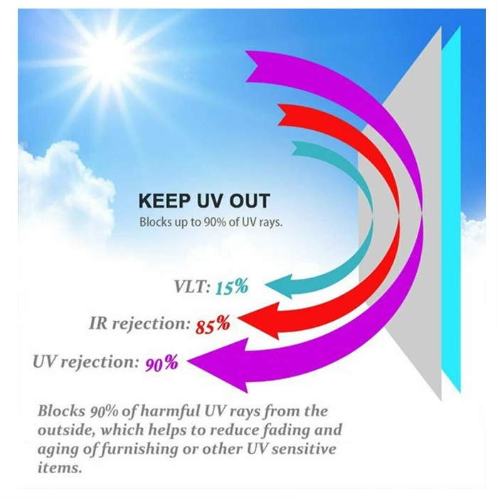 Sinar Inframerah Boleh Disekat, Pelarut Ultraviolet Ditambah Di Bahagian Bawah, Dan Filem Tetingkap Sehala Menyekat 85% Sinar Inframerah Dan 99% Sinar Ultraungu. Dan Untuk Mengurangkan Pudar Dan Penuaan Perabot Dalaman, Permukaan Mempunyai Lapisan Kalis Gores, Anti Geseran, Tidak Luntur, Tidak Melepuh, Mudah Ditanggalkan, Jimat Dan Praktikal.