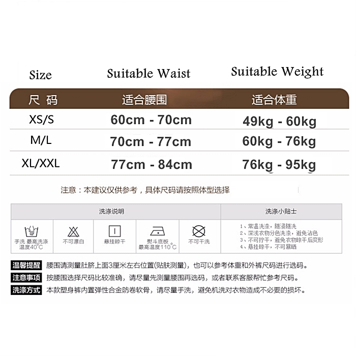 Berkesan mengecutkan abdomen, pinggang dan pinggul. Bentuk beberapa bahagian abdomen dan persekitarannya menjadi langsing dan tebal. Bahagian dalamannya mempunyai peredaran udara yang baik, lembut, selesa pada kulit, dan menyerap peluh. Reka bentuk potongan 3 dimensi di pinggul membentuk punggung menawan.
