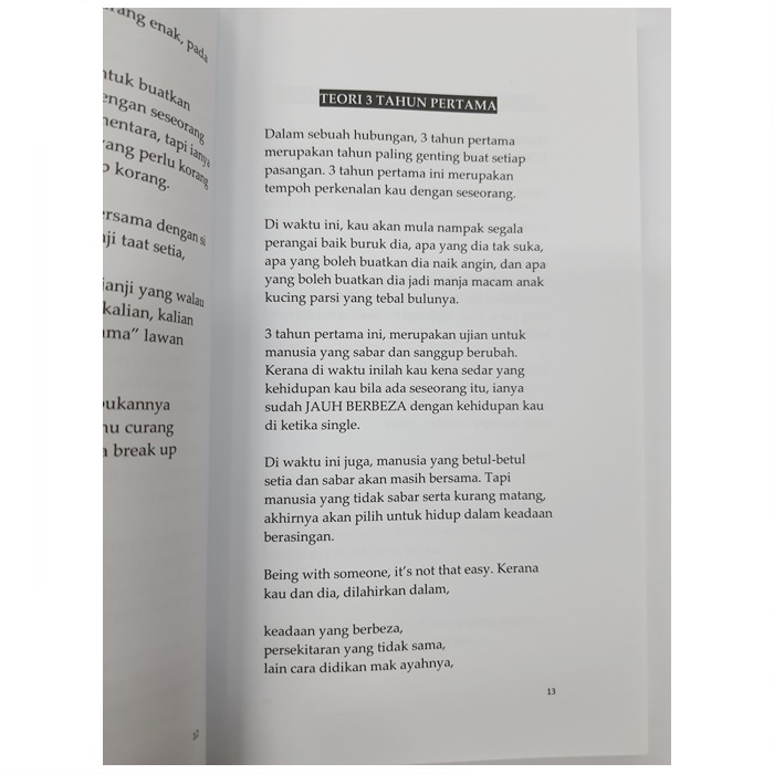 Segala kata-kata nasihat dan juga tips dalam buku ini, merupakan daripada pengalaman penulis sendiri serta juga diambil daripada nasihat mereka-mereka yang bahagia dalam hubungan mereka serta juga mereka, yang telah gagal dalam perhubungan mereka agar segala kebodohan mereka itu, akan dijadikan pengajaran.