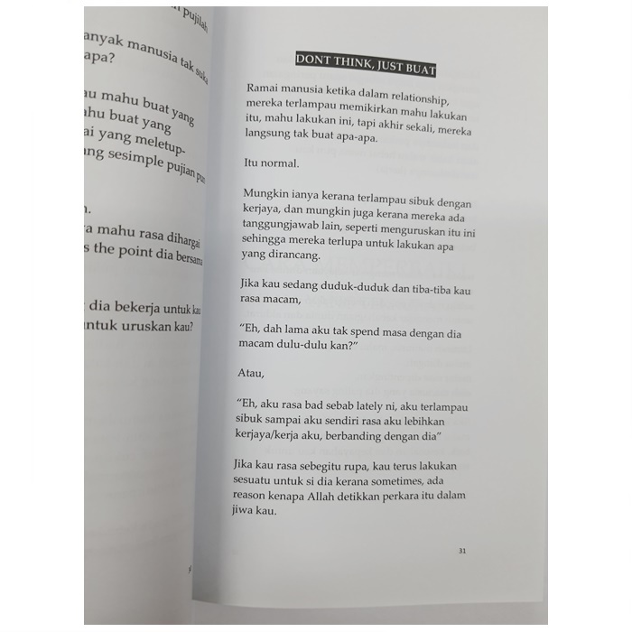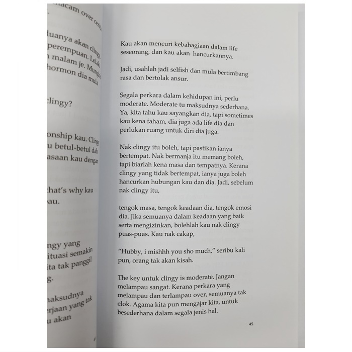 Buku ini berbentuk motivasi, nasihat dan juga tips, cara untuk memperbaiki hubungan serta menghindari anda, dari terus hidup bersama dengan si dia, tetapi langsung tidak rasa bahagia.