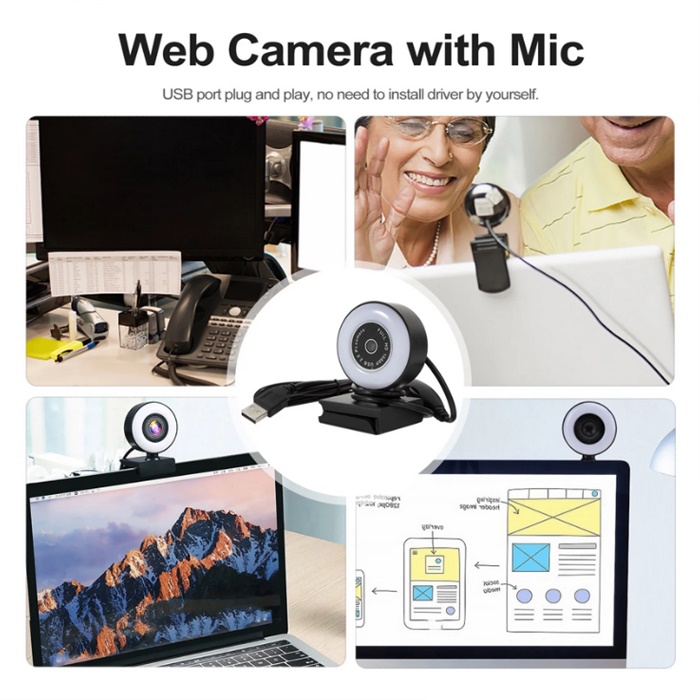 Mencari kamera komputer serba boleh dengan lampu LED? Pencarian anda berakhir di sini! Kamera web HD 1080P dengan mikrofon terbina dalam ini sesuai untuk penstriman langsung, kursus dalam talian, persidangan video, menangkap foto dan rakaman video.