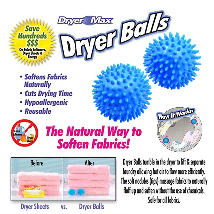 Specially designed drying balls will allow air to circulate more freely while softening fabrics and serve as an all natural fabric softener and drying accelerator.