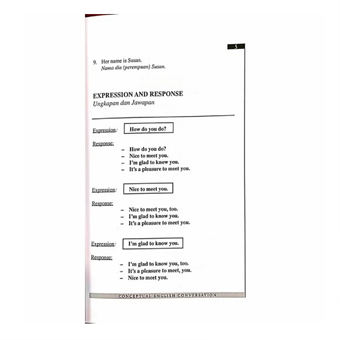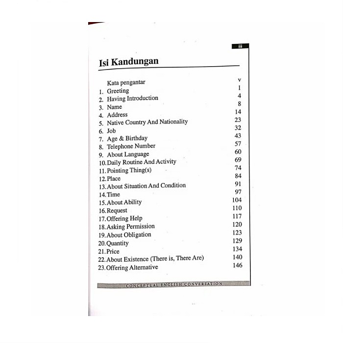 Buku ini sesuai dengan Judul " Conceptual english conversation " sengaja disajikan dalam bentuk percakapan-percakapan dalam pelbagai situasi dan konsep serta cara- cara bertanya dan menjawab