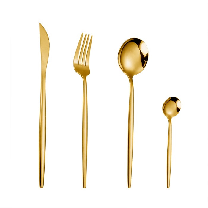 Reka Bentuk Moden diperbuat daripada bahan Keluli Tahan Karat berkualiti tinggi, peralatan makan adalah kukuh dan tahan lama, anti karat.