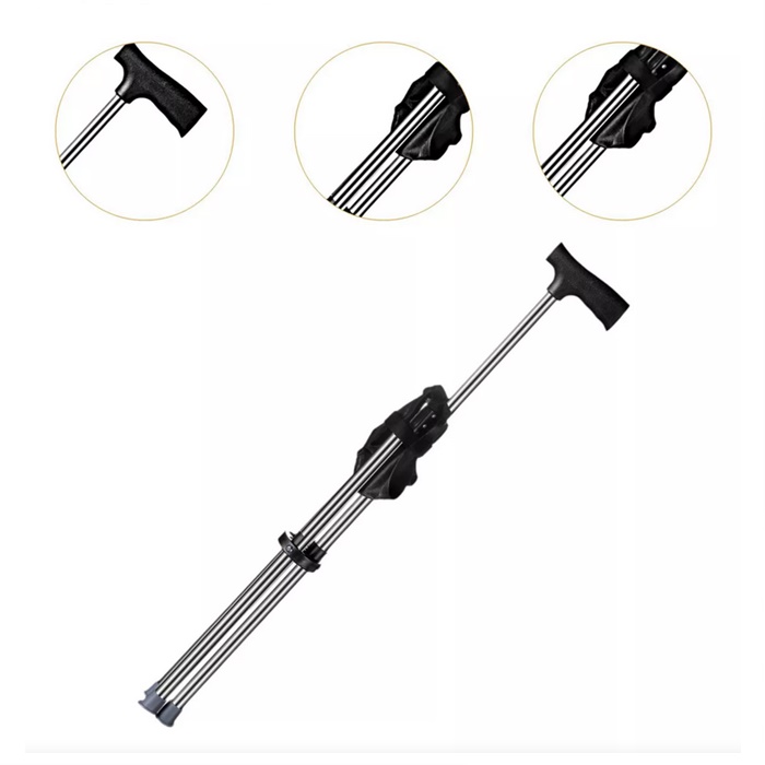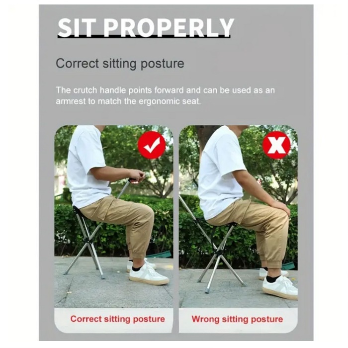 Tongkat Lipat Mudah Alih dengan Tempat Duduk – Kerusi Kruk Kembara Ringan