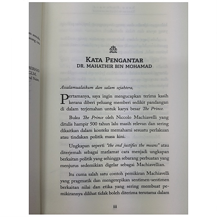 Niccolo Marchiavelli adalah sebuah nama yang mashyur dalam dunia pentadbiran, politik dan juga bidang-bidang seperti geopolitik, sejarah dan lain. Tahukah anda, pada umur 29 tahun, Machiavelli dijadikan diplomat untuk menjaga wilayahnya dari ditakluk. Beliau menulis "The Prince" ini dalam kegagalan, beliau menggubal sebuah modul bagaimana untuk mendapatkan semula kuasa. Semua karya agung dunia pada masa itu telah ditellah untuk menyiapkan adikarya beliau ini.