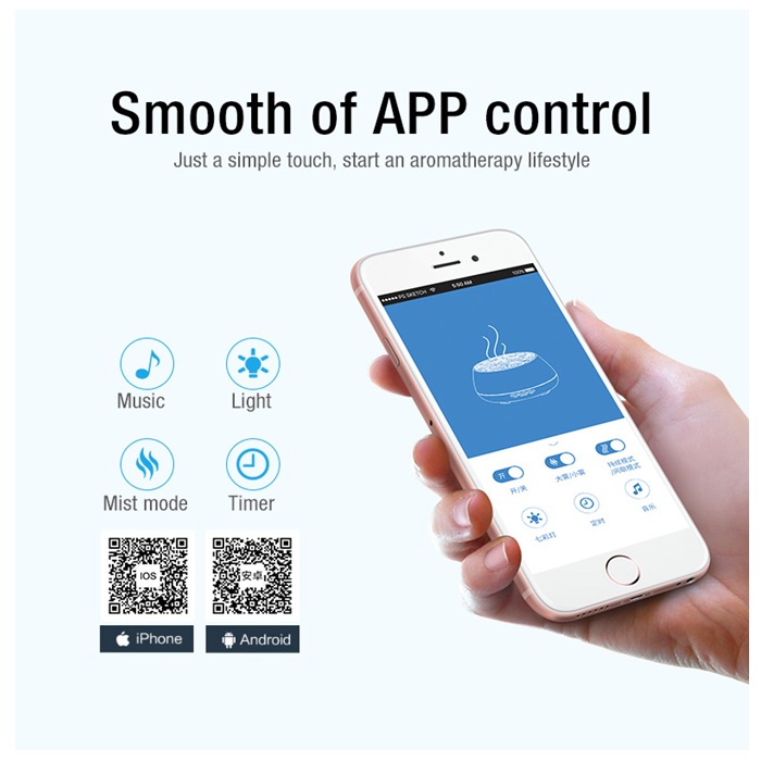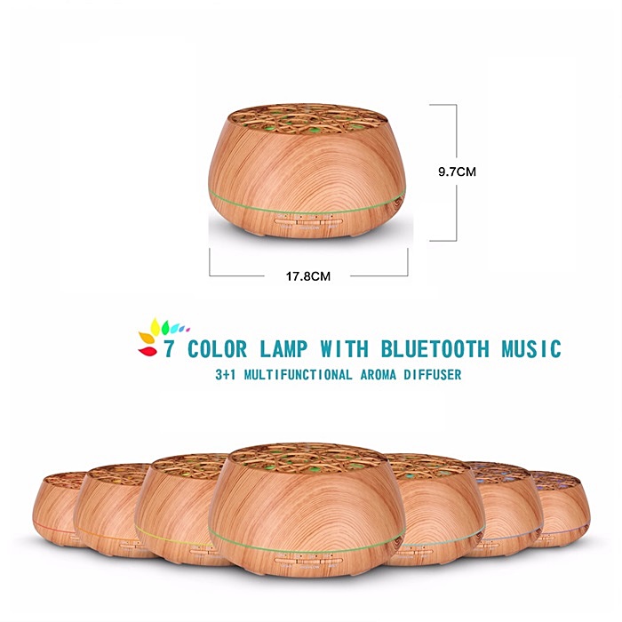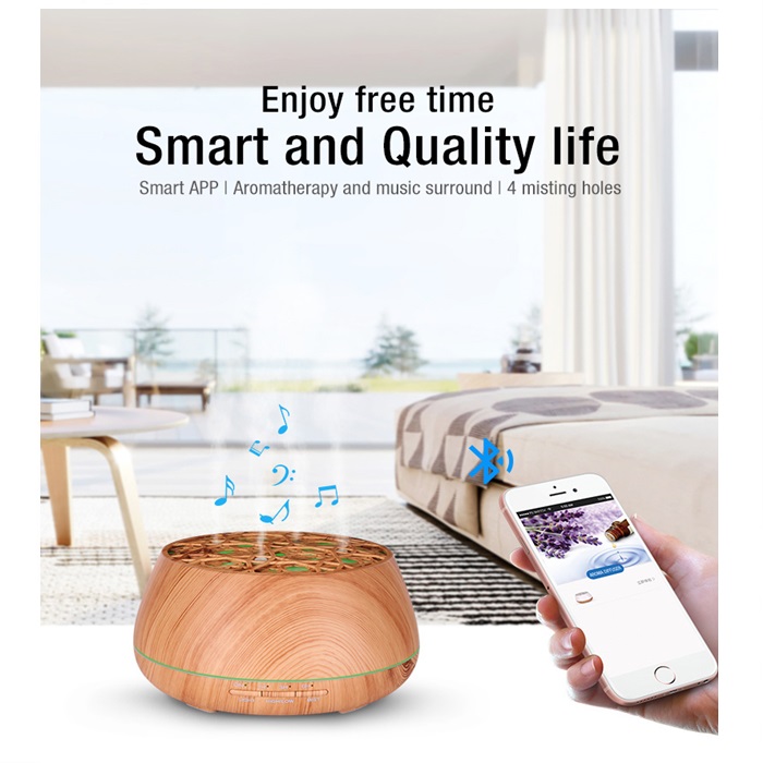BUILT IN BLUETOOTH FEATURES TO PLAY MUSIC. You can play music from your phone via the bluetooth feature of the diffuser. Mist OUT Music ON. Enjoy high quality life.
