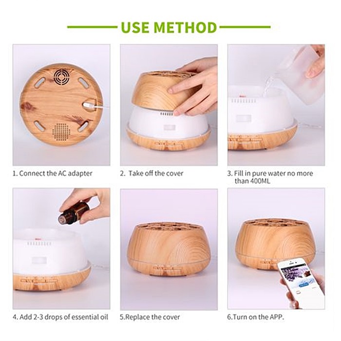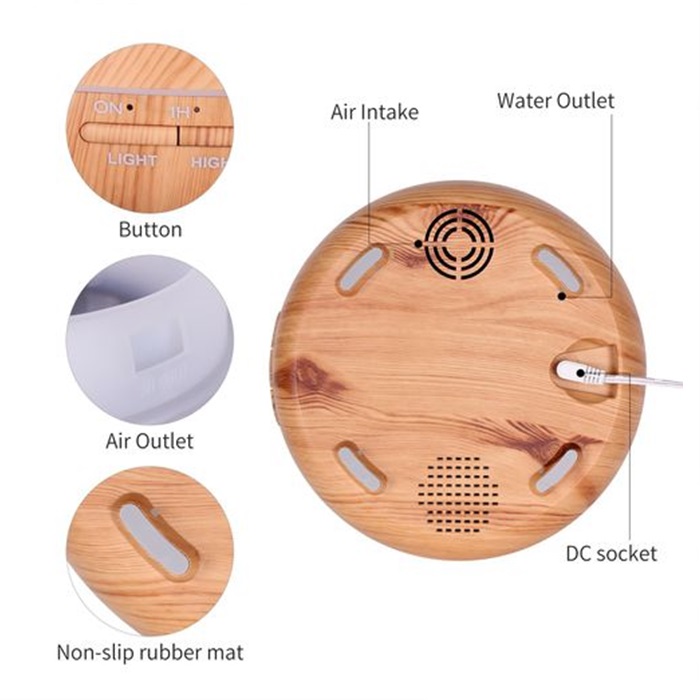 UNIQUE AND COMPACT DESIGN : Coated with wood grain, the aroma diffuser looks very natural and primitive. The cap of the aroma diffuser can be easily taken off. You won’t bother to unscrew the cap with great force when your hands is wet. Just gently take off the cap, add water and essential oil.