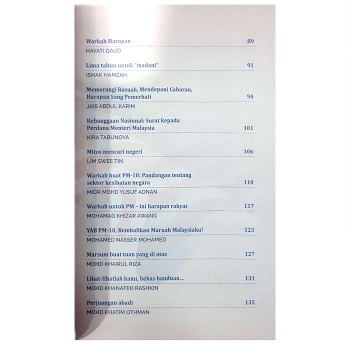 In our culture, writing letters is a habit that is increasingly being forgotten with the emergence of various gadgets and the speed of social media. What is more unusual is writing to the leader and the document being circulated for public viewing. This is because what is expressed may also be hidden by other groups. The papers in this book demand the understanding and understanding of the Prime Minister and his leadership with an open heart and mind.