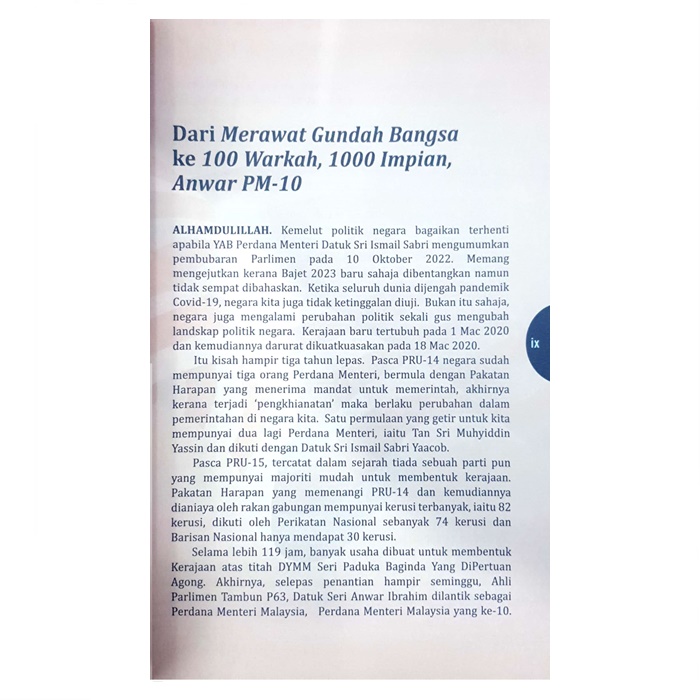 100 Warkah, 1000 Impian, Anwar PM-10 - 是 100 封信件的集合,包括写给马来西亚总理安瓦尔的心声、观点、梦想、奉献和希望。