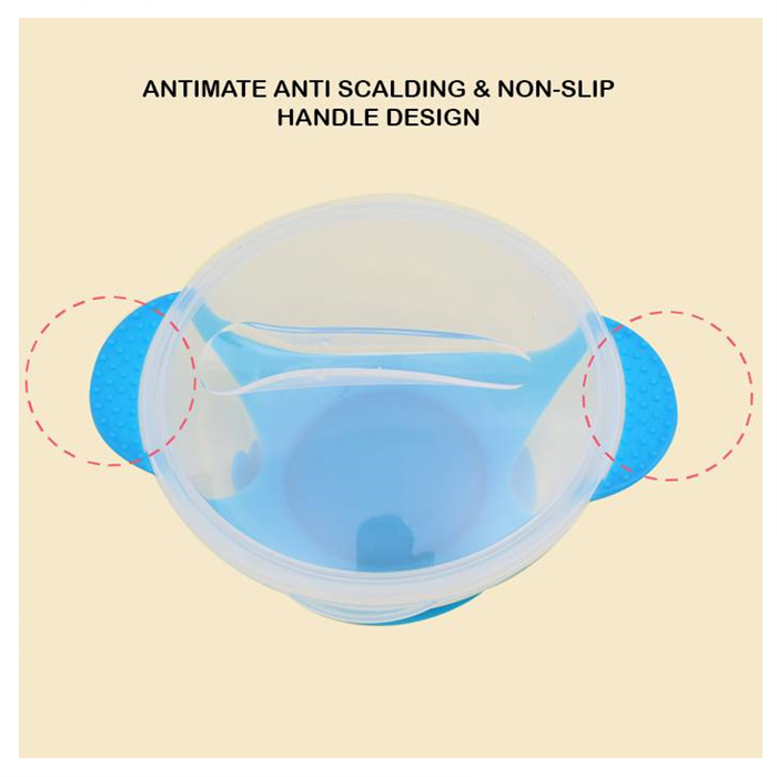 - Produk ini mengatasi bahaya bayi makan sendiri, alasnya mempunyai penyedut, dan mangkuk boleh disedut kuat pada desktop untuk memastikan keselamatan bayi.