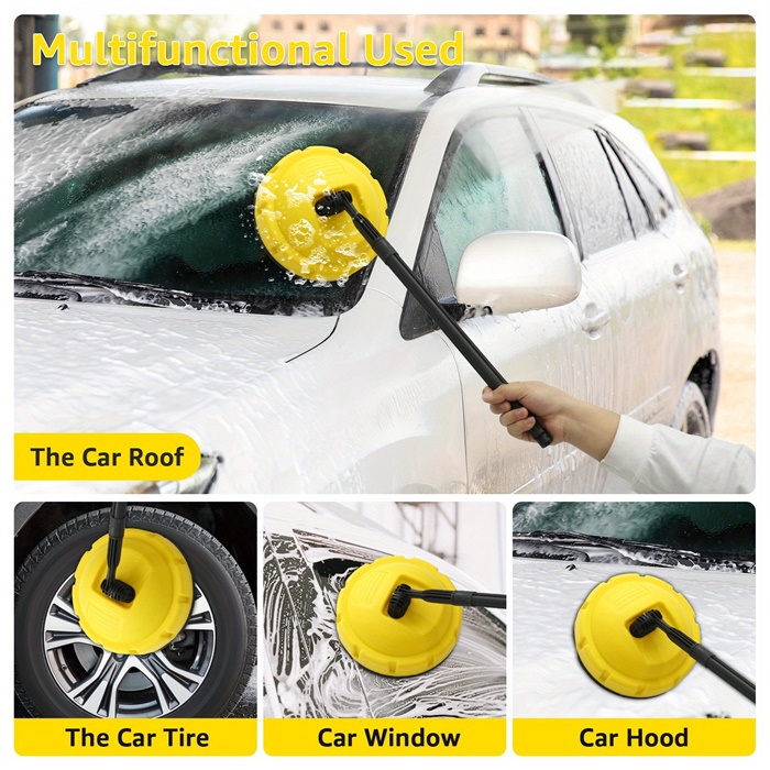1,Long-Distance Handle: Equipped with a long handle for cleaning vertical surfaces such as walls and garage doors.