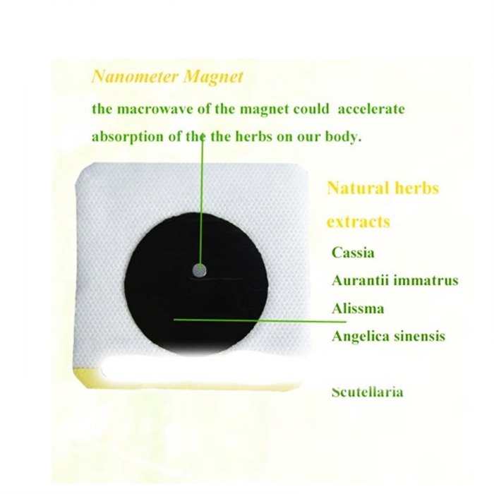 The Nano magnet in the centre of the patch produces magnetic waves (wave length about 4 - 14m), enough to pass through the skin at about 8 ~ 12cm in depth. Such waves are able to perform messages similar to meridian therapy.