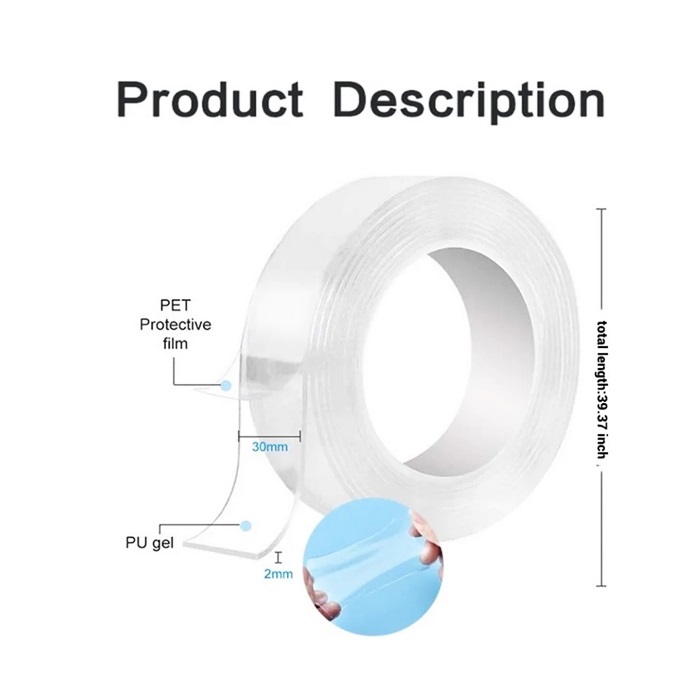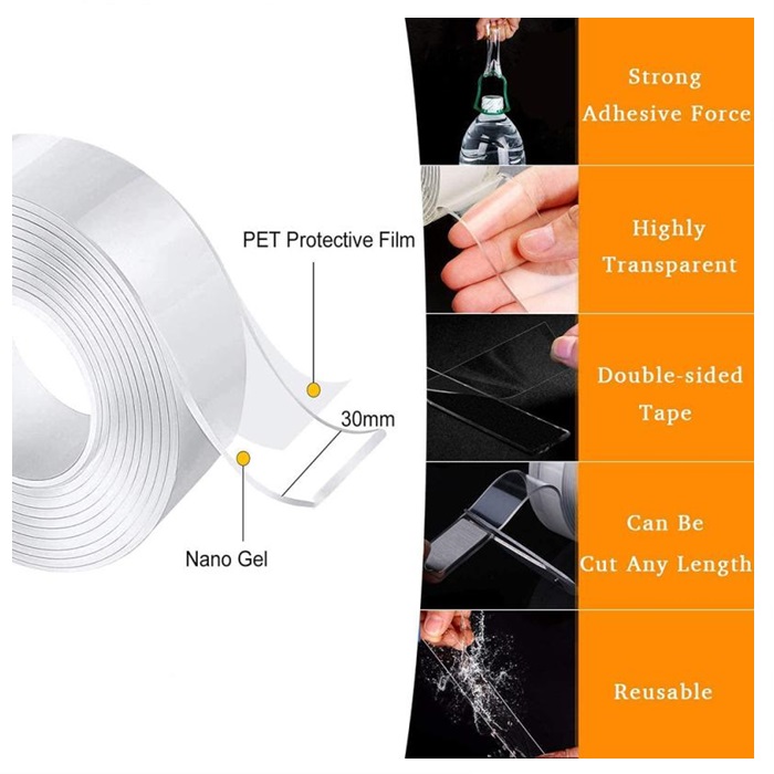 可重复使用的双面胶纳米无痕胶带可移动贴纸可水洗粘性环盘扎带小工具