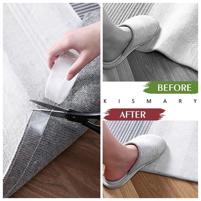 Durable Material:---2021 new double-sided tape: Our double-sided carpet tape is made of PU glue, with durable double-sided self-adhesive, transparent, no residue, detachable and washable features, will not leave any on the wall or any surface trace. Non-slip.