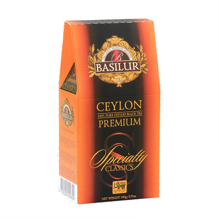 Basilur Ceylon Premium ialah teh yang sangat baik yang ditanam di kawasan pergunungan Ceylon. Memberi infusi baldu warna keemasan dan aroma yang kaya. Klasik sebenar, sesuai pada bila-bila masa.