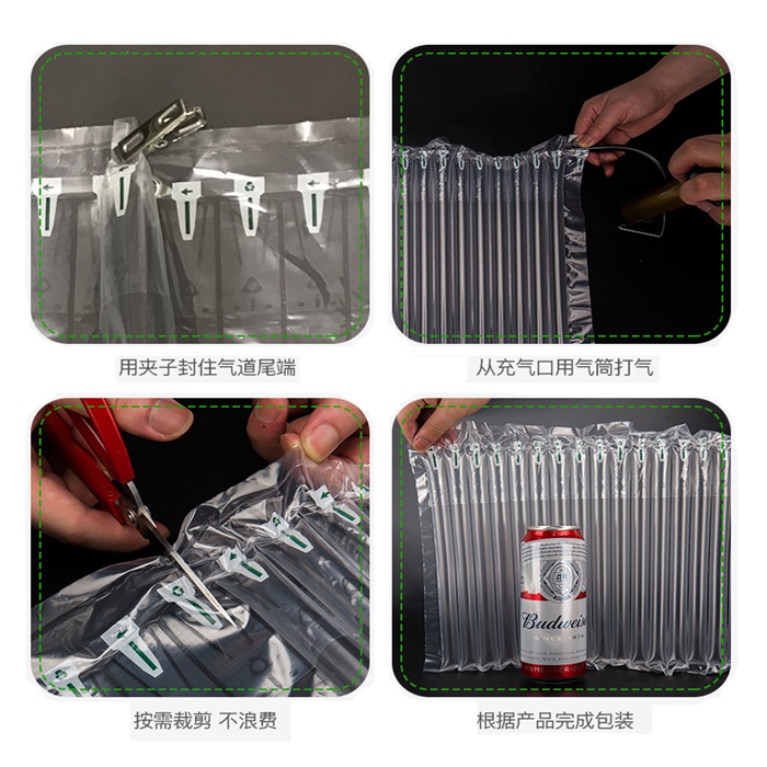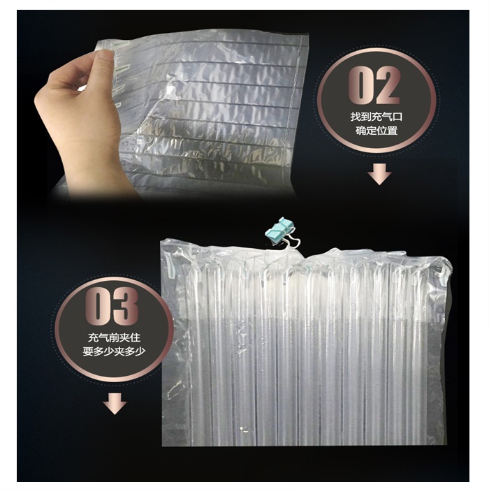 * Reka bentuk ini mempunyai satu siri tiub udara yang bersebelahan yang melambung tinggi untuk melindungi dan melindungi produk ringan semasa penghantaran. Tiub disambungkan melalui siri injap sehala yang dipatenkan. Jika satu ruangan dibubarkan, yang lain terus meningkat.