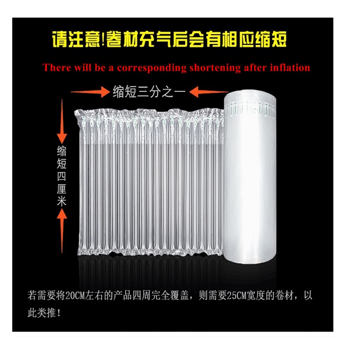 *The design features a series of adjoining air tubes that are securely inflated to cushion and protect lightweight products during shipment. The tubes are connected via a series of patented one-way valves. If one chamber is punctured, the others remain inflated.