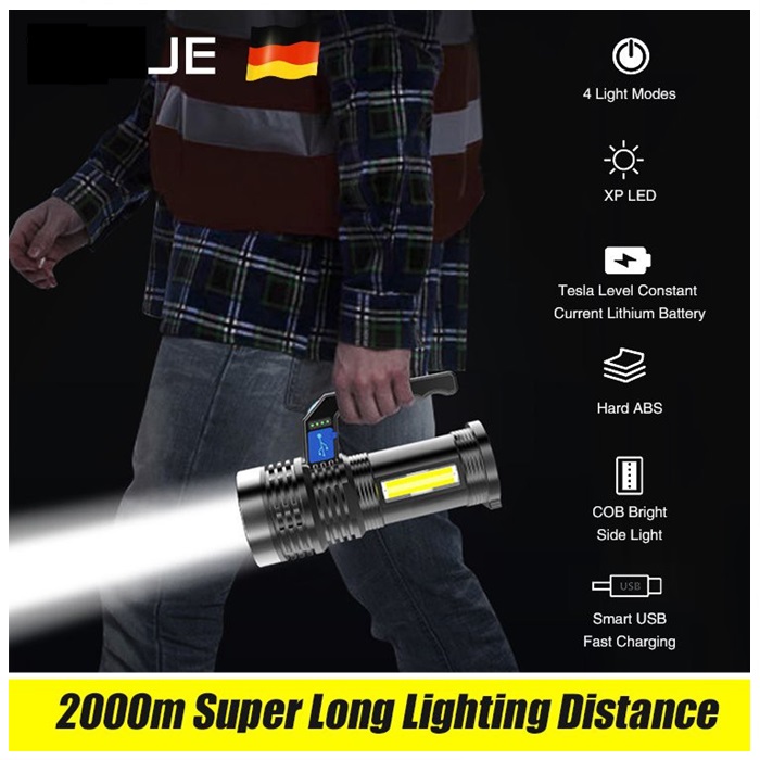 - ABS Flashlight Body Made. of hard and durable material, the flashlight is crush-resistant and fall-resistant; so it' s not afraid of falling from height.
