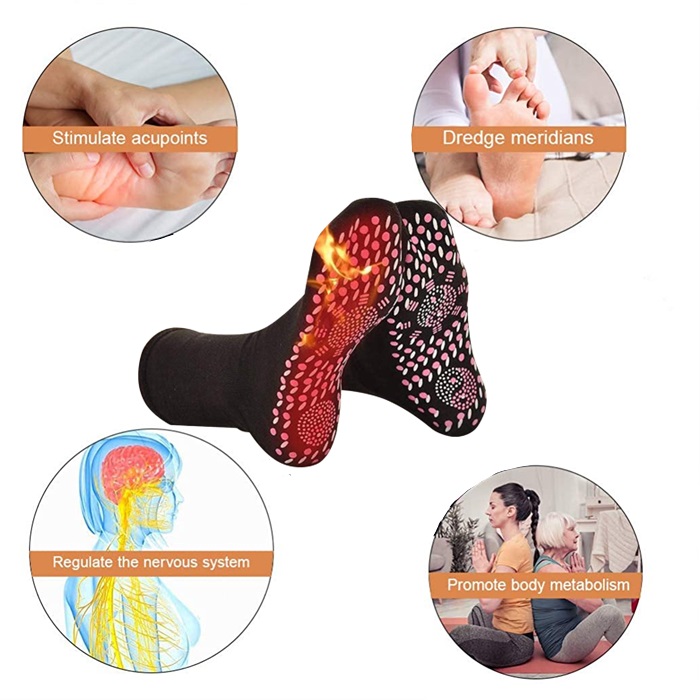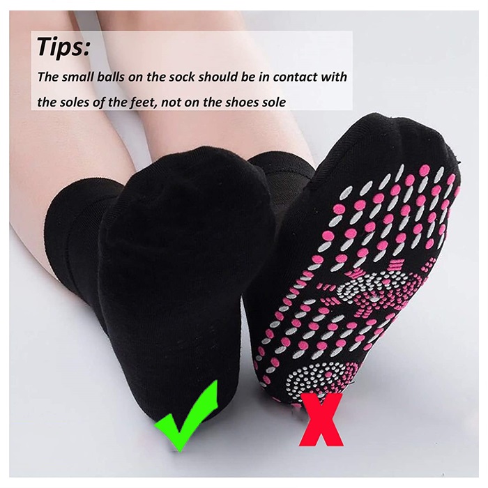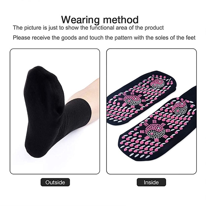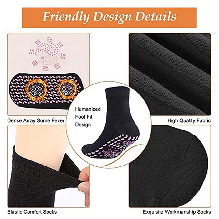 The bottom of socks has Tourmaline design which can self-heating to warm and relax your feet in cold weather.