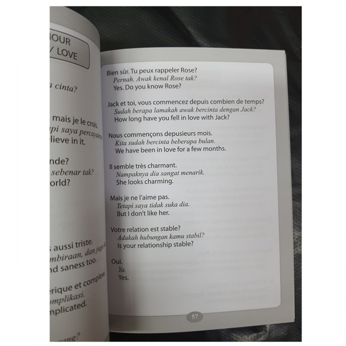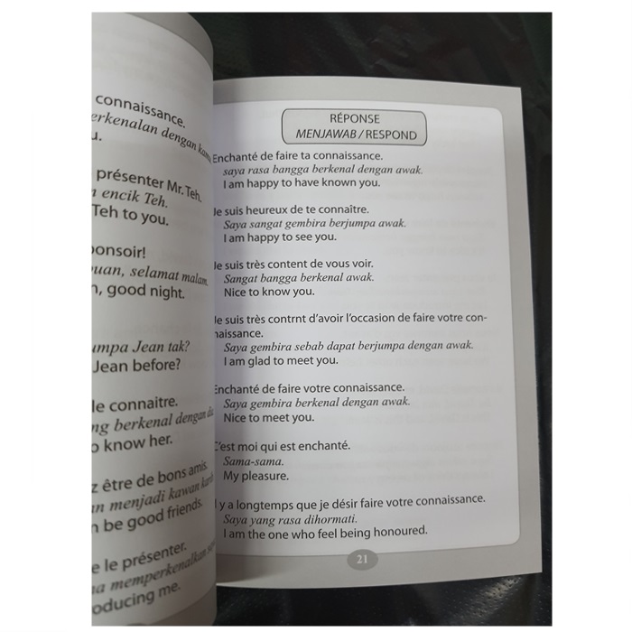 This book is designed for those who want to learn basic French within a short period of time. The use of simple phrases and sentences will help readers to grasp the language in no time at all. Available in three languages of Bahasa Malaysia, English and German and is suitable for all age groups.