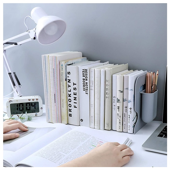 【节省空间】这款书挡比传统书挡占用的空间更小。非常适合将书籍整齐地存放在书桌或书架上。