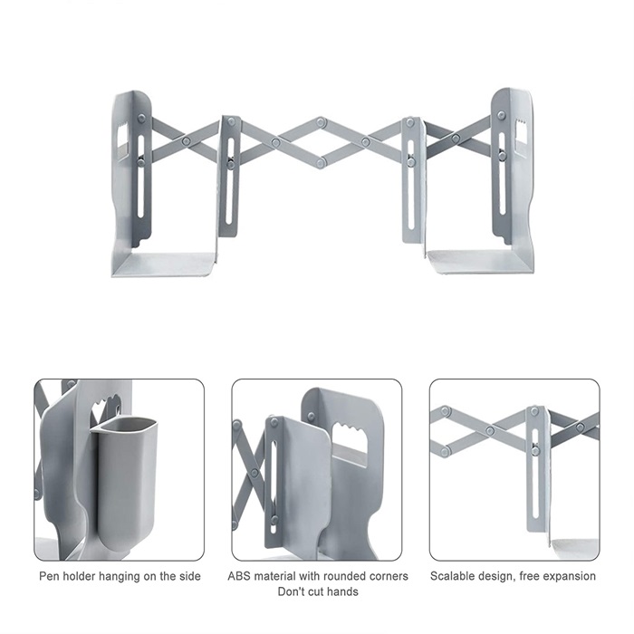 【可调节伸缩功能】这款可调节的书挡架很灵活,可以根据书的数量重新调整大小。