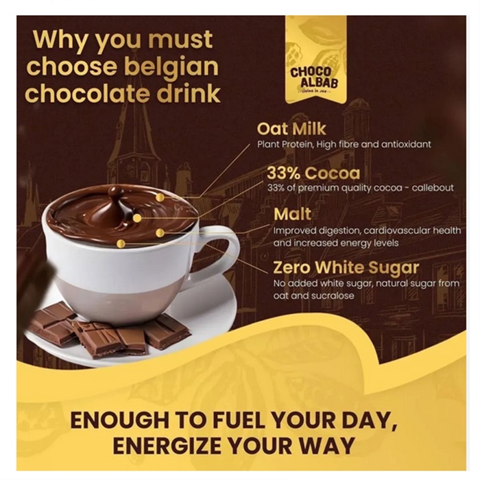 这款由 Choco Albab 生产的比利时巧克力饮料适合那些想要转向更健康生活方式的人......
