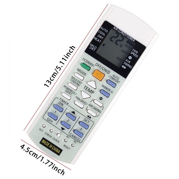 Panasonic Inverter udara bersyarat REMOTE CONTROL UNIT Remote ini adalah produk untuk menggantikan unit terpencil yang rosak anda. Ia boleh mengawal penukar udara Panasonic Inverter dengan mana-mana setting.com yang serasi denganA75C3300A75C3208A75C3706A75C3708A75C3883A75C3935A75C4185Ia berkuasa untuk beroperasi dalam jarak jauh.Dengan bentuk yang indah & penunjuk jelas BIG LCD DISPLAY.
