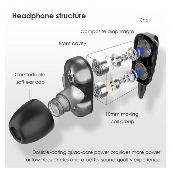 Speaker: 8 mm speaker Mini Dual Driver