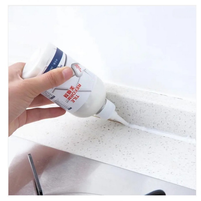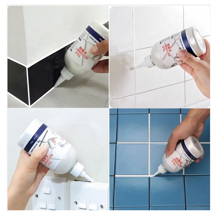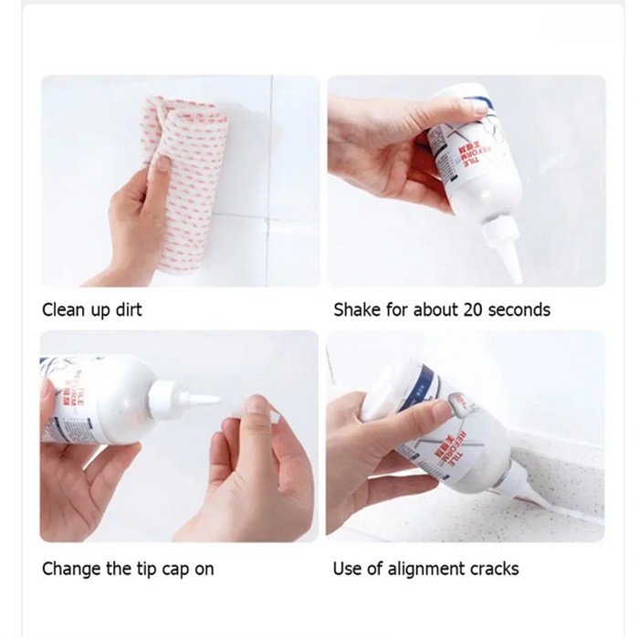 2. Place the inlet of the bottle between the tile gaps and gently press the container to draw along the line between the tiles.