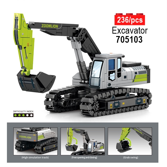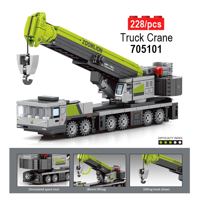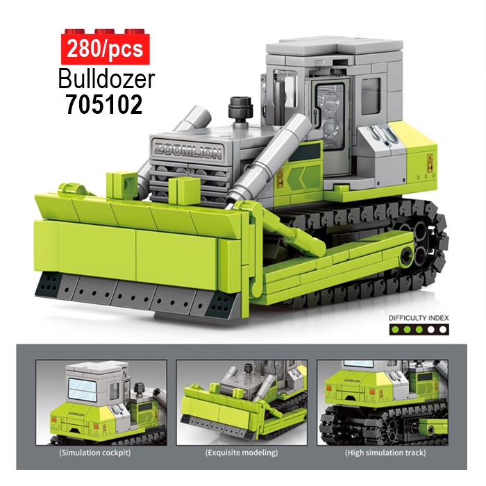 积木技术专家 SEMBO BLOCK 工程卡车系列 MOC - 705100-705103 工程车辆机械混凝土搅拌车、机械起重机、推土机、履带式挖掘机积木 DIY 模型套装教育玩具,适合儿童生日和圣诞礼物。