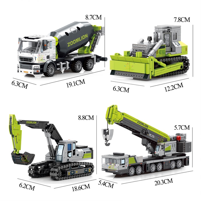 Building Blocks Technical Experts SEMBO BLOCK Engineering Trucks Series MOC - 705100-705103 The Construction Vehicles Mechanical Concrete Mixer Truck, Mechanical Crane, Bulldozer, Crawler Excavator Bricks DIY Model Set Educational Toys for Kids Birthday and Christmas Gifts.