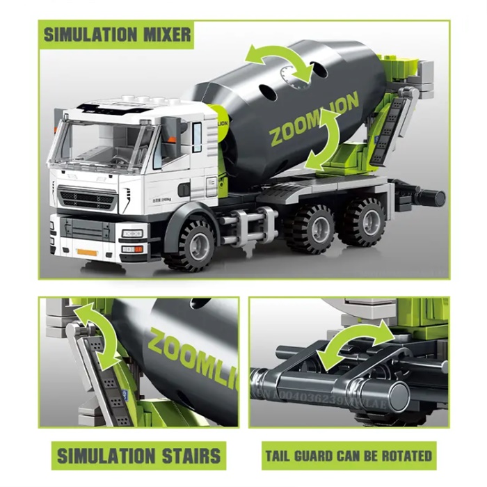 Blok Bangunan Tech Mechanical Mixer Crane Truck Excavator Bricks Toy