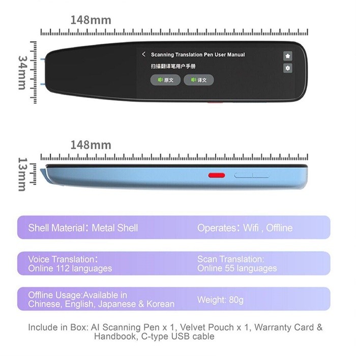 Alami terjemahan yang lancar dan tingkatkan kemahiran bahasa anda dengan Pen Kamus Terjemahan Pintar Spirgo 3A Plus, direka untuk menyediakan terjemahan yang tepat dan boleh dipercayai pada bila-bila masa, di mana sahaja.