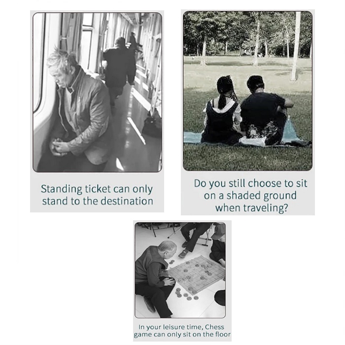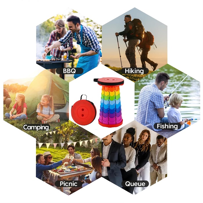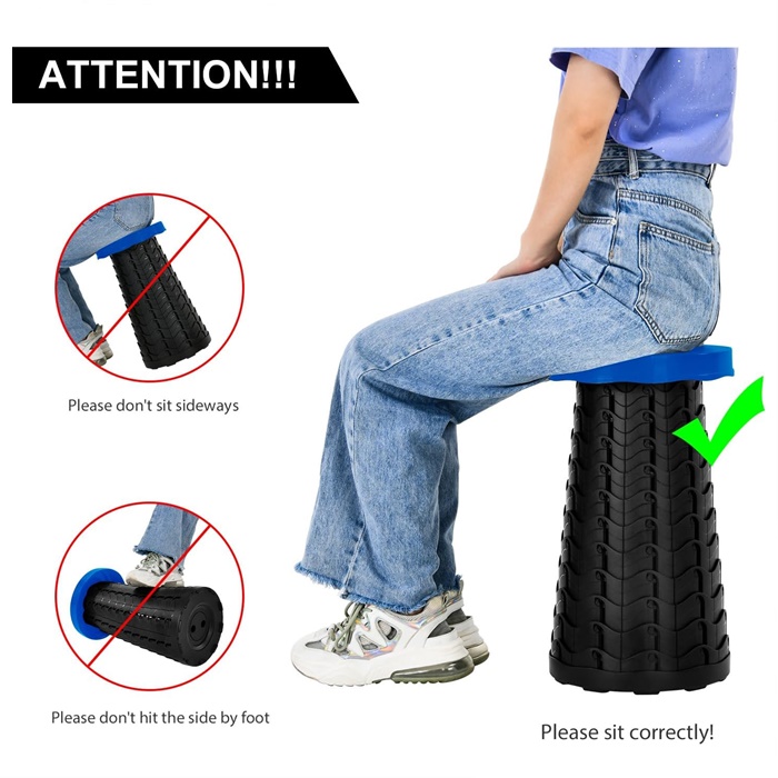 Selamat & Selesa: Dengan reka bentuk silinder yang anggun, bangku menawarkan pengalaman duduk yang selamat dan selesa. Ia sesuai untuk digunakan di rumah, semasa perjalanan, perkhemahan, memancing dan banyak lagi. Bangku boleh lipat ini juga dijadikan hadiah hebat untuk hari lahir atau hari raya.