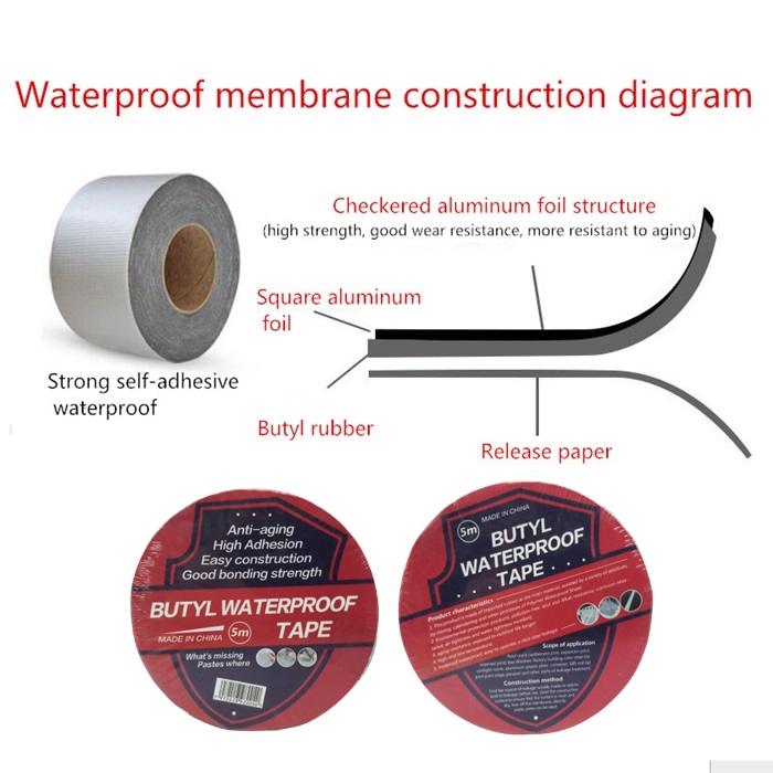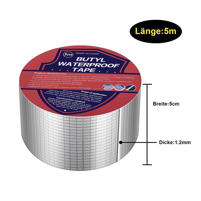 Service life: The butyl tape adopts the new technology metal aluminum film base surface, which is resistant to high and low temperature, and is not easy to age and crack. The surface of the aluminum film adopts a new embossed square process, which is more durable and wear resistant.