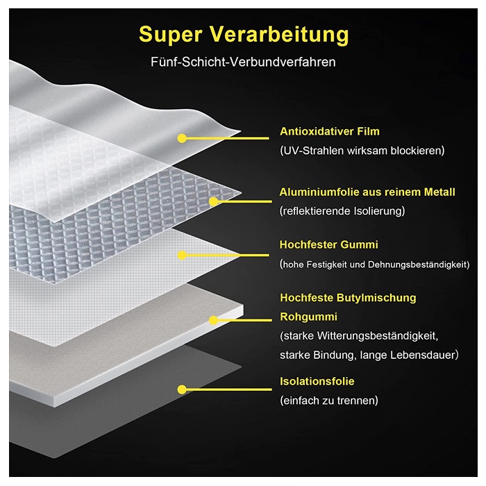 Material: Aluminum Foil Backing/ Black Butyl Rubber