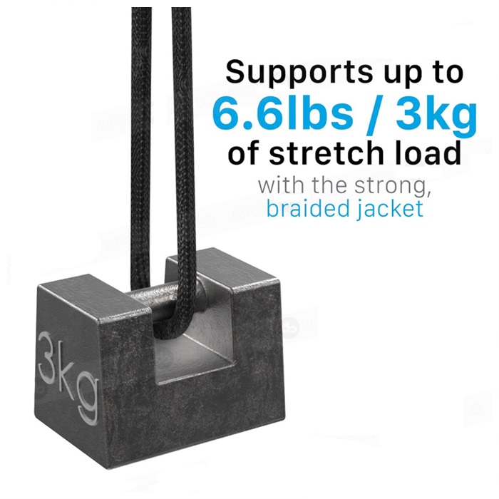 -Stylish chrome effect metal connectors with nylon braided skin.