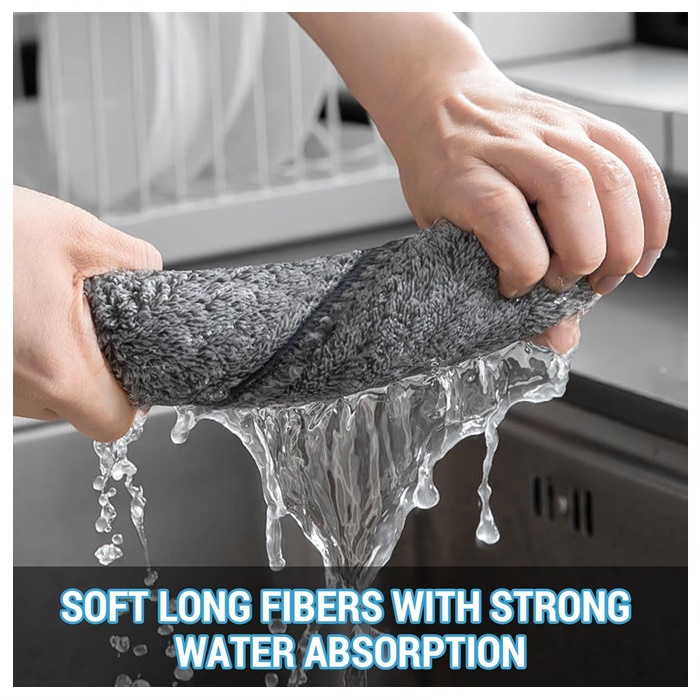 Kain Lap Pinggan Mangkuk Mikrofiber Arang Buluh – Tuala Pembersih Minyak Ultra-Penyerap & Tidak Melekat (5PCS/10PCS)